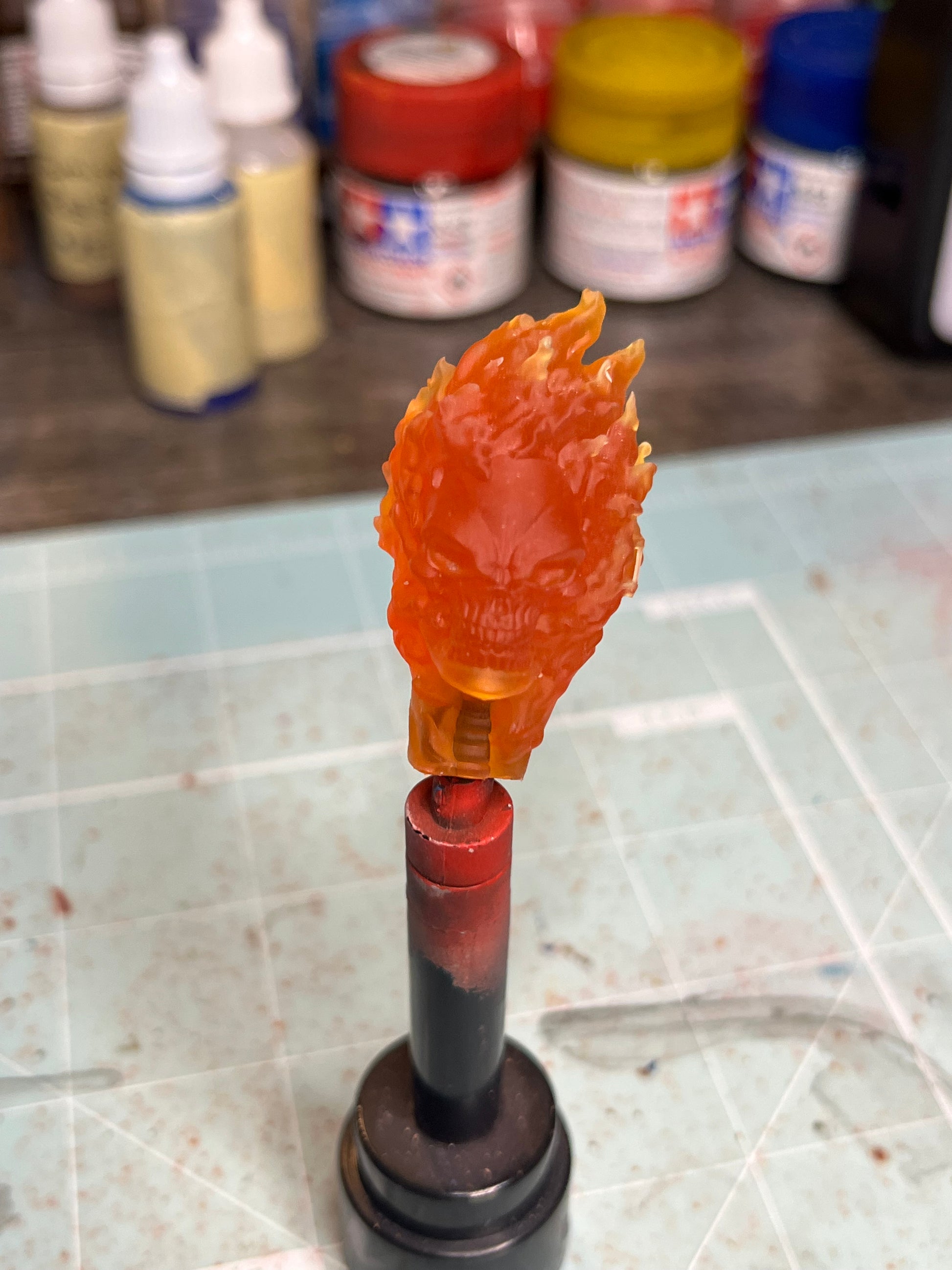 Papito's spirit of Vengeance. This sculpt is designed by Papusholo and printed by me using clear Orange flame resin.we have agreed to carry his unique designs on my shop!This is specificallly designed for the Mafex Terminator figure. (NOTE: Sculpt does not come painted unless Painted option is chosen.)
