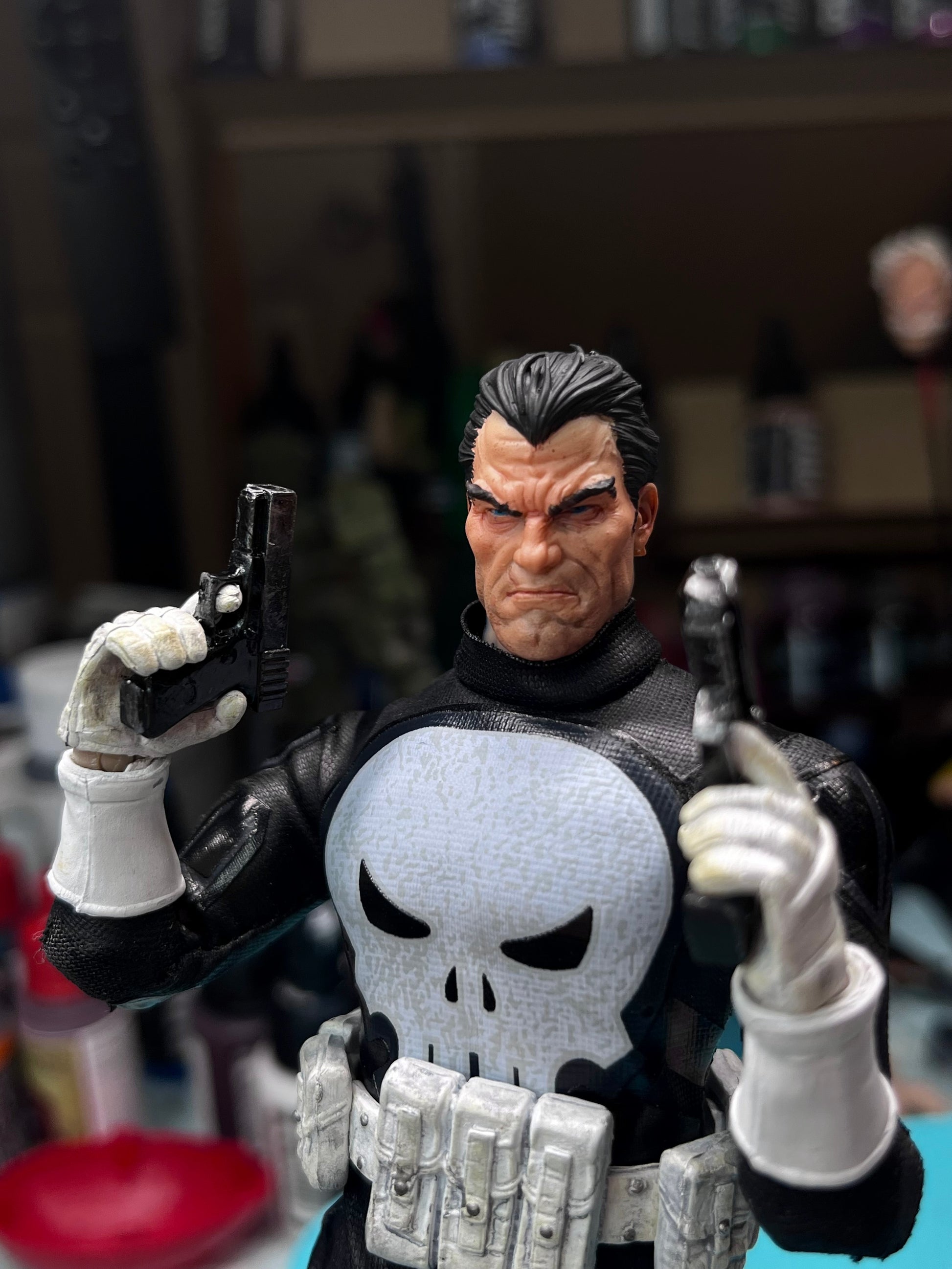 the punisher! This headsculpt is fully painted and scaled for Mezco punisher figures.