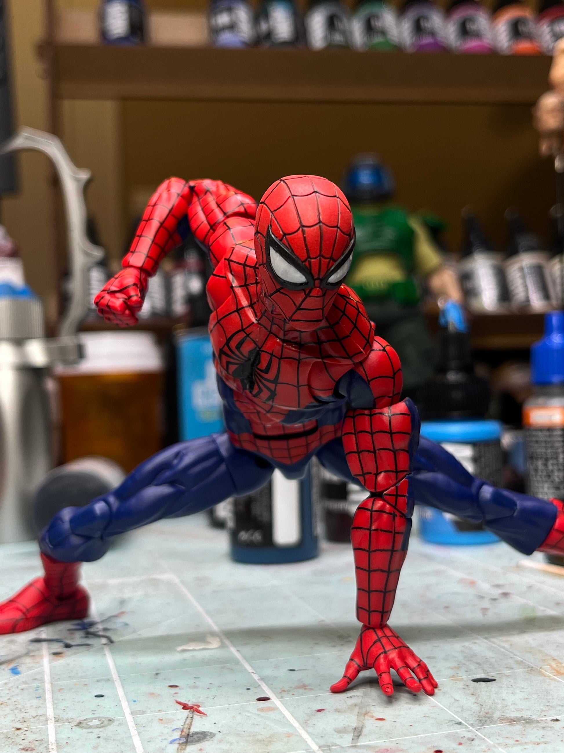The friendly neighborhood webslinger. This sculpt is fully painted and ready buy! scaled and socketed for Marvel Legends and Mezco!