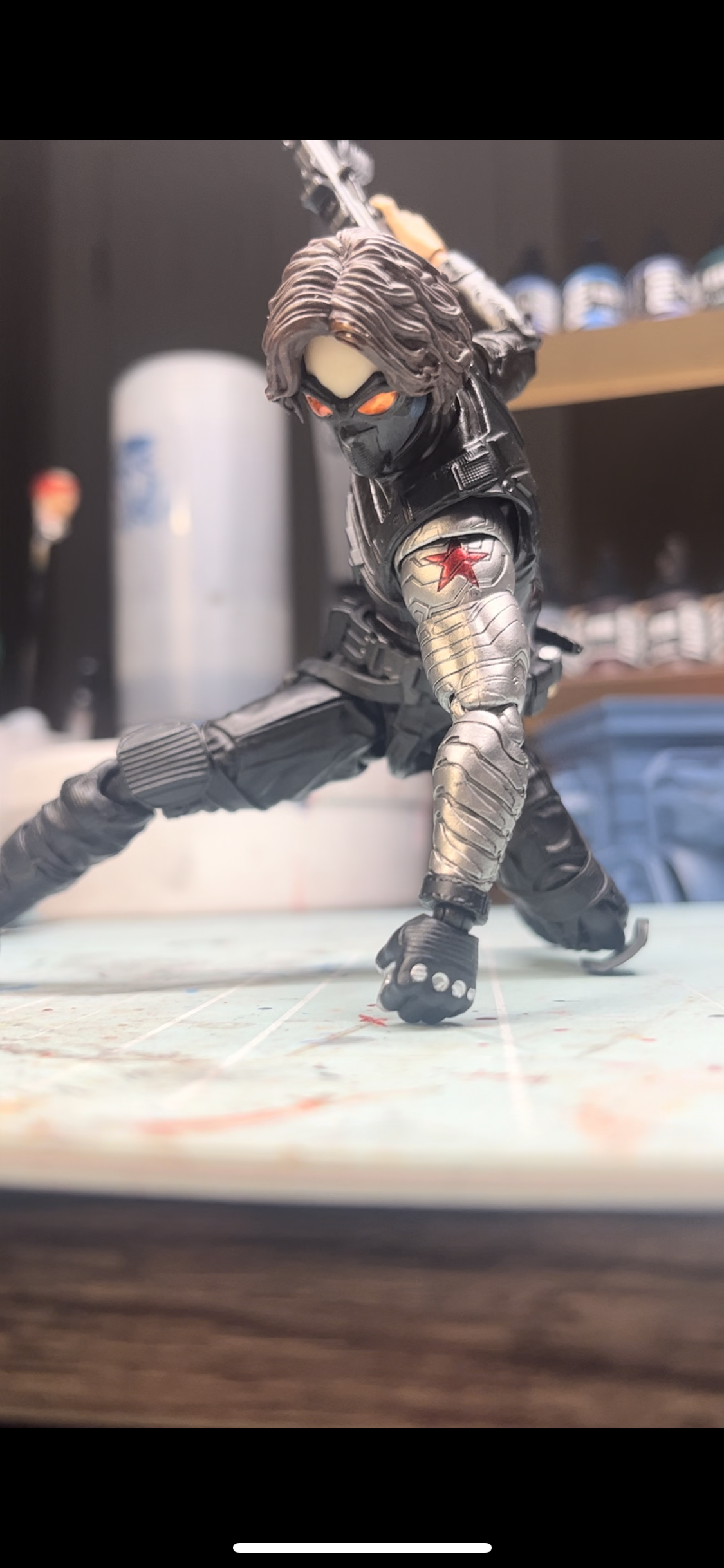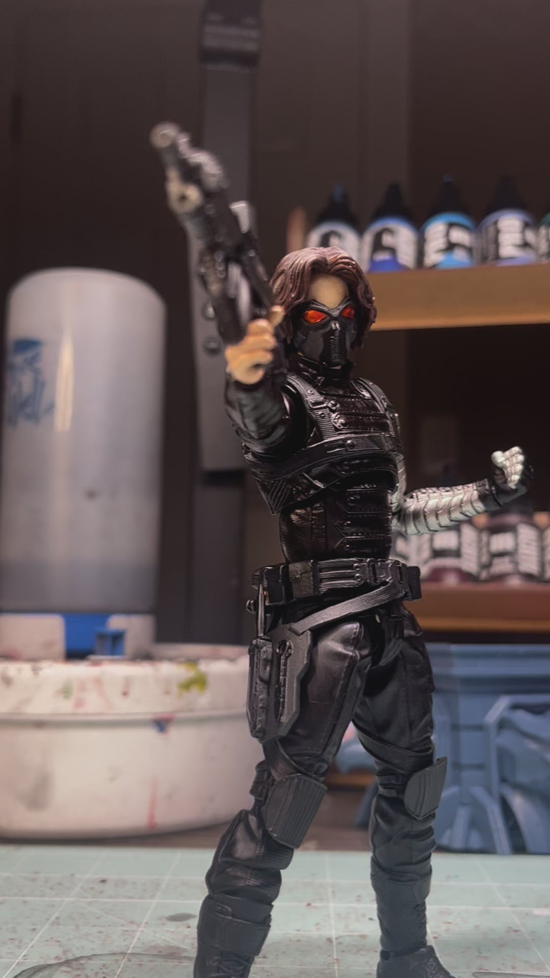 Armed and Dangerous! Winter soldier is finally here. These sculpts were designed by Hyden3D and printed/painted by me. There are two versions goggles or no goggles, the hair is a removable piece that can be fixed in place with glue. Scaled for both Mafex and Revoltech!